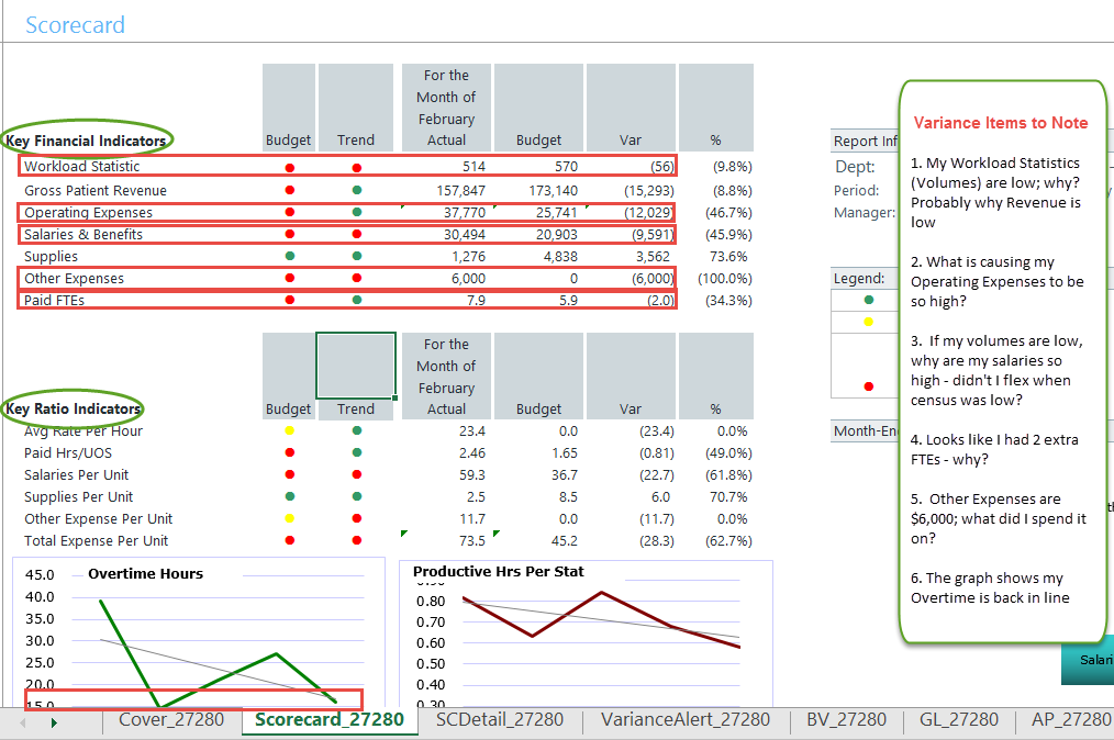 Note that some additional details can be derived from this report, we can now answer some of the questions posed within the Variance Items to Note box from the previous Scorecard section: