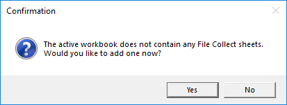 A message box prompts you to add a file collect sheet to the file. Click Yes.