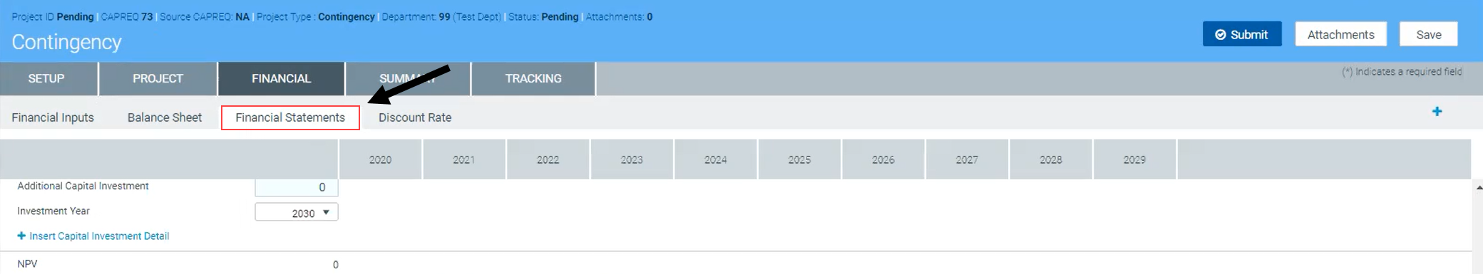 In the Financial tab, click the Financial Statements tab.