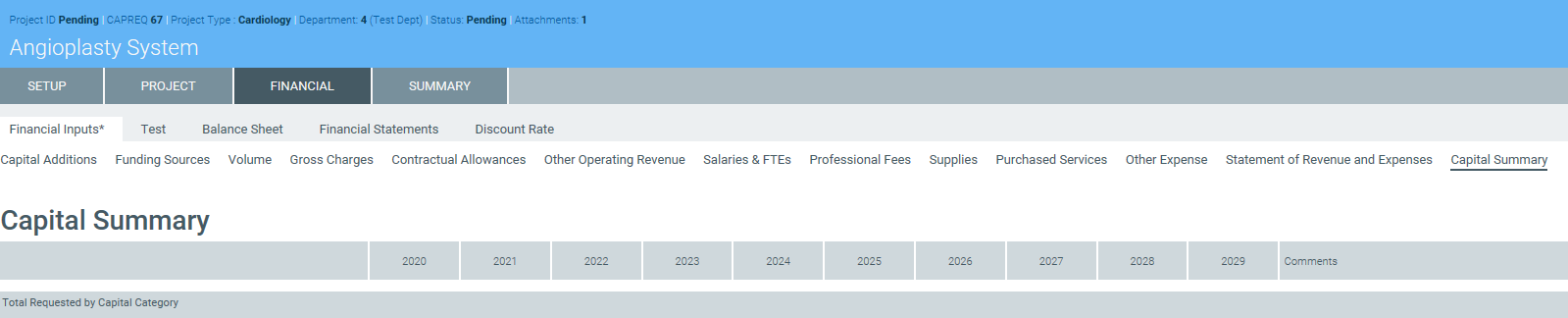 Capital Summary tab