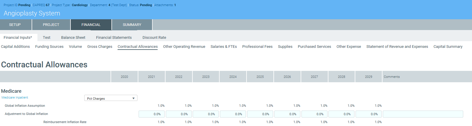 NOTE: The system allows you to make a copy of the Financial Inputs tab and rename it. This allows you to model different scenarios in your project. As a result, you may see several versions of the Financial Inputs tab with different names in the project plan.
