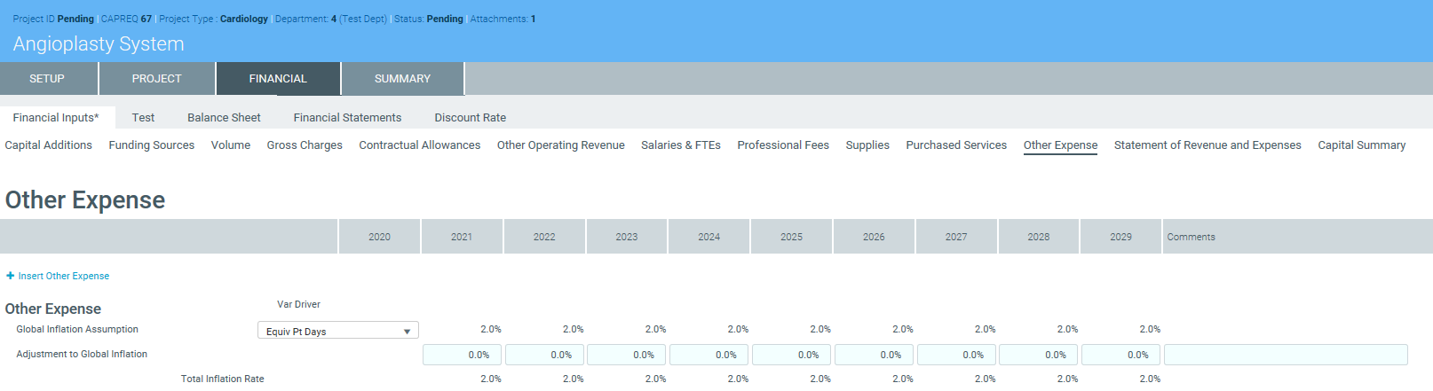NOTE: The system allows you to make a copy of the Financial Inputs tab and rename it. This allows you to model different scenarios in your project. As a result, you may see several versions of the Financial Inputs tab with different names in the project plan.