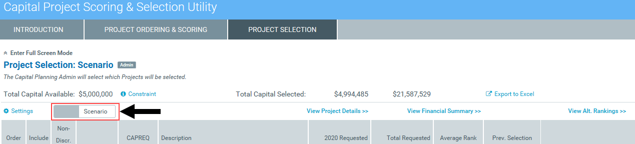 NOTE: To see how editing project requested amounts can change the portfolio of projects, you can create a scenario to help you determine the final list of projects.