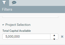 2. Scroll to the bottom of the Filters dialog, and in the Total Capital Available field, type the upper limit of capital project dollars that can be selected.