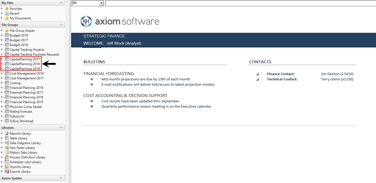 1. In the Explorer task pane, in the File Groups section, click the planning year to process the plan files.