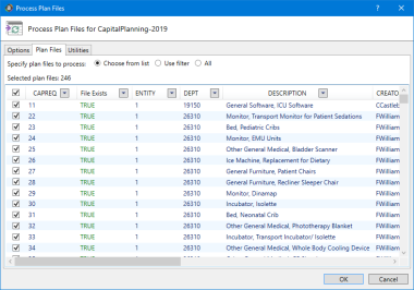 3. In the Plan Files tab, select the plan files to process, and click OK.