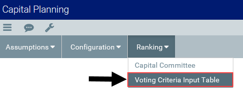 From the Ranking tab, click Voting Criteria Input Table.