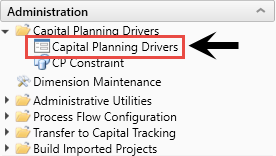 To configure next year's drivers, click Capital Planning Drivers, and double-click Capital Planning Drivers.