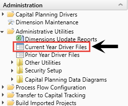 To configure this year's drivers, click Administrative Utilities, and then double-click Current Year Driver Files.
