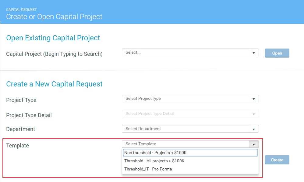 Axiom Capital Planning allows you to create different templates to help meet the capital planning needs of your organization. For example, you can create a template for different departments or project types - such as IT or Facilities. You can then publish these templates to make them available to users in the Create or Open Plan Files utility to create and submit capital project requests.