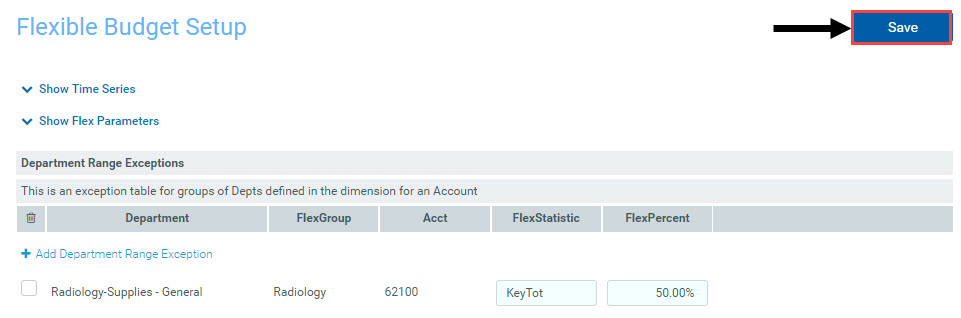 Group Column for Acct Exceptions The column name in the DEPT dimension used to identify Flex Budget groups for flexible budget exceptions. The default value is FlexGroup.