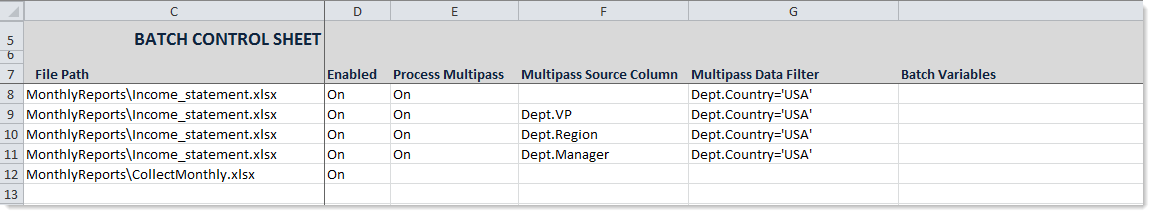 If desired, you can add multiple Batch Control Sheets to the file, and process them in the same operation. In the File Processing pane: