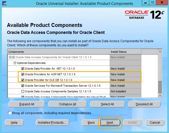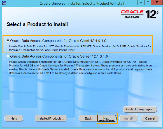 Oracle Data Access Component (ODAC) version 12.1 can be installed by your Information Technology department's server administrator. They will also need to work with the Oracle database administrator to determine the connection string and login information to the Oracle database.
