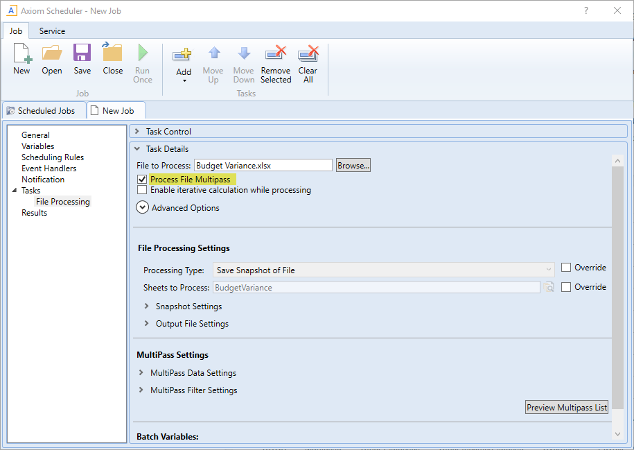 5. If you want to process the file using multipass processing, make sure that Process File Multipass is selected. It is selected by default for most file processing files. However, if you do not want to perform multipass processing, then you should clear this option.