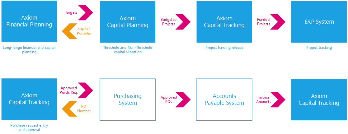 - Axiom Capital Planning – Supports Threshold and Non-Threshold capital planning, including comprehensive process workflow and sophisticated capital approval decision making.