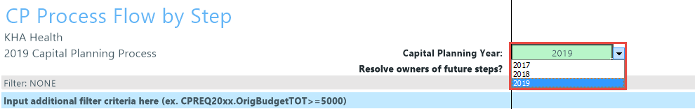 In the Cap Plan Admin or Cap Plan task pane, in the Process Flow section, click Process Flow, and double-click CP Process Flow by Step.