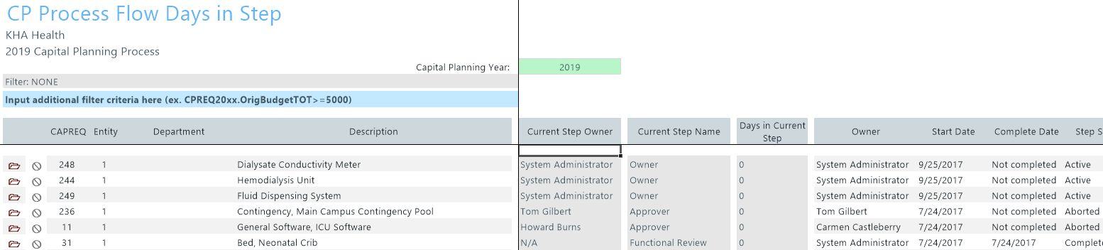 - CP Process Flow Days in Step – Similar to the CP Process Flow by Step report, but adds the days in each step.