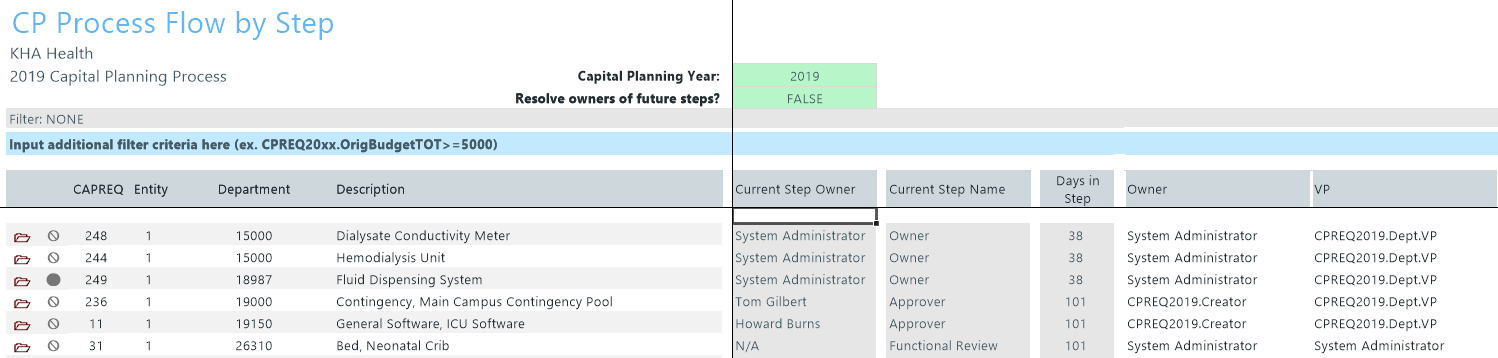 Project owners can monitor their capital project requests using the following three reports: