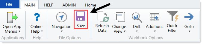 When you are ready to save the report, in the Main ribbon tab, click Save.