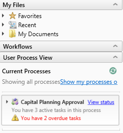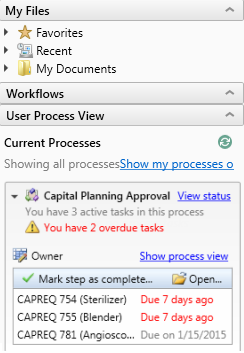 When using My Files and Tasks task pane, a notification displays when there are capital project plan files pending the user's review and/or approval.