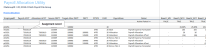 The next set of three rows generates the allocation records for a monthly payroll expense item from the PayBudYYYY table. The first row is the expense for the employee. The second row is the allocated expense calculated using the percentage allocation from the assignment row. This is followed by the third row which is the offset for the allocation record. This calculation pattern is repeated for all expense records for this employee, at which point another set of records is calculated for the next PayrollAllocAssignment record.
