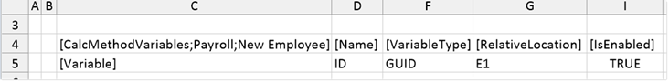 When the user inserts this calc method, no variables dialog displays to the user. Instead the calc method is directly inserted, and a GUID is generated and placed in column E, in the first row of the calc method.
