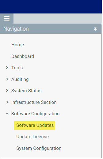 The Software Updates page opens. This page lists the details of updates you have applied in the past, and enables installing new updates. If you have not yet installed any updates using the Update Service, then this page will not have any history.