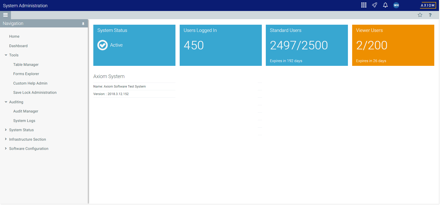 The Axiom Web Client provides access to several system administration features in addition to the end user features.