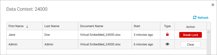 To view the active sessions for a data context and see the users, click View Sessions. Then, if you need to break a save lock, click Break Lock.