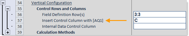 The location of the insert control column or row is defined on the file's Control Sheet. If the query is a standard vertical query, you specify an insert control column. If the query is a horizontal query, you specify an insert control row.