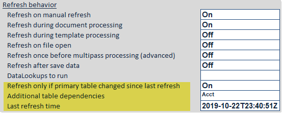 This configuration is primarily intended for Axiom queries that bring in supporting data for the file, where this supporting data does not change frequently. Eliminating the automatic execution of these queries when the table data has not changed may improve file performance.