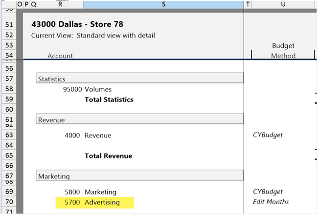 When the calc method is inserted, Axiom finds the specified column for the RelatedColumnValue variable—in this example, Acct.Description—and returns the value for the selected account. Both values are then placed into the specified relative locations within the calc method.