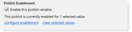 When you return to the Edit Picklist Variable dialog, the Picklist Enablement section is updated to reflect the number of enabled values.