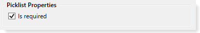 NOTE: Enabling the Is required check box simply updates the variable properties, so that you can return the required status using the GetFileGroupVariableProperty function. Axiom does not provide any built-in functionality to require the picklist value when saving data to the database or performing other actions. It is up to the file designer to return the required status and then build the desired solution as needed—for example, to enable custom save validation if the picklist variable is flagged as required.