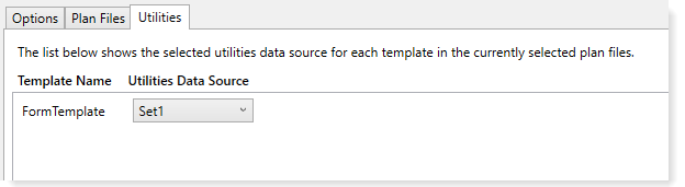 For each template listed, use the Utilities Data Source field to select the data source to use for plan files created from that template.
