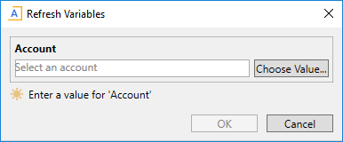 When the Refresh Variables dialog is presented to the user (or the Web Client filter panel), only the Account variable displays: