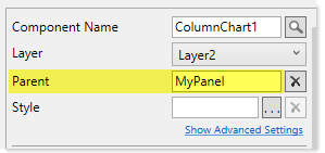 NOTE: It is not recommended to manually edit the Parent property to assign a component to a panel or to remove an existing assignment, as this manual edit does not adjust the location settings for the component. Instead, the component's current location settings are left unchanged and are now interpreted as relative to the panel (or in the case of removing a parent assignment, as relative to the overall canvas). See the following section for more information about how the location of child components is determined. This mismatch of child component location and parent assignment can also result in confusing behavior in the Form Designer.