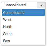 In this case the default value for the combo box (the value saved in the Selected Value setting for the file) is Consolidated. The user can change this value by selecting a region, such as West. This causes the value West to overwrite the existing value in the Selected Value setting. A column chart could look to this setting to determine what to display in the chart.