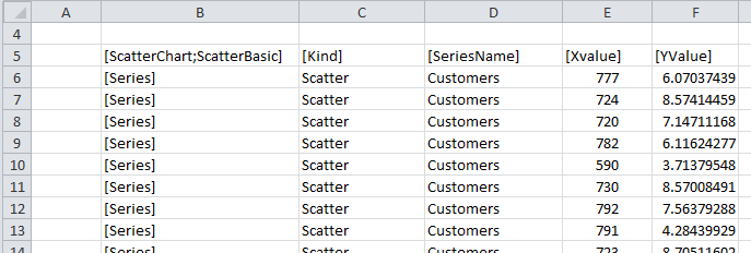 Each row flagged with this tag defines a data point to be displayed in the chart. Multiple rows can belong to the same series, depending on the name entered in the [SeriesName] column.