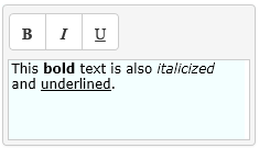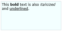 This <strong>bold</strong> text is also <em>italicized</em> and <span style="text-decoration:underline;">underlined</span>.