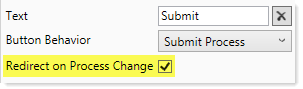 When either of these behaviors are selected, one additional component property becomes available for the button: Redirect on Process Change. This setting determines what occurs after a user has used the button to complete the current process task: