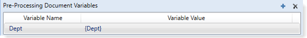 For each pre-processing document variable, you can specify a variable name and a variable value. The target file must be set up with GetDocumentInfo functions that return the values for the specified variables.