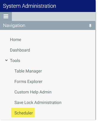 From the Navigation panel, select Tools > Scheduler.