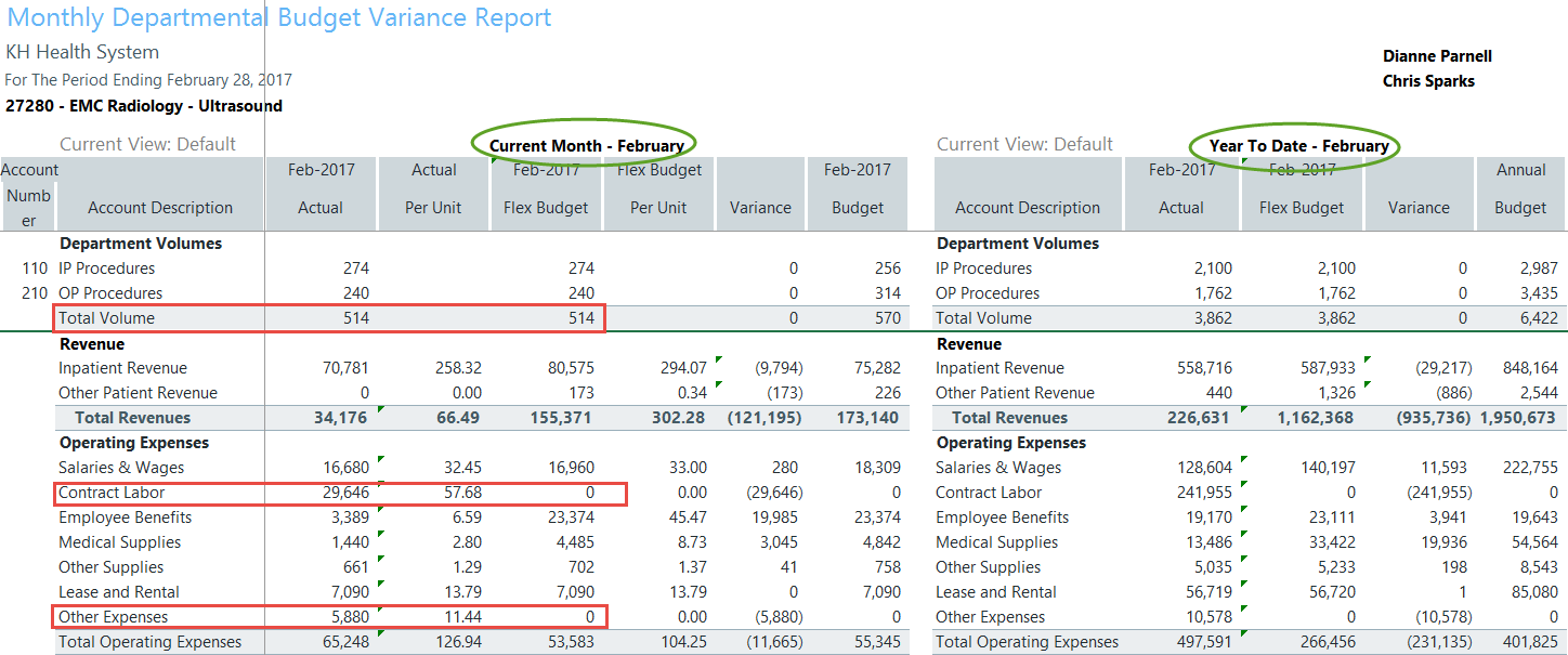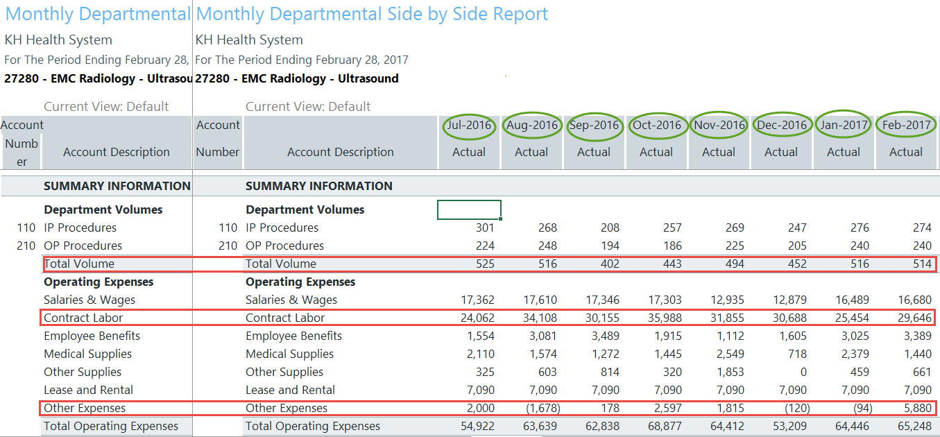 Monthly Variance Analysis is focused on departmental volumes and all expenses. While this also includes Salary related expenses and FTEs, further analysis is often completed for these items by reviewing the bi-weekly the reports in the Labor Analysis section.