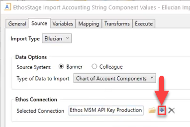 In the Source tab, in the Ethos Connection section, click the Create a New Connection icon.