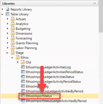 Click on a sub-folder that contains staging tables: EthosFinance, EthosLabor, EthosStudent.