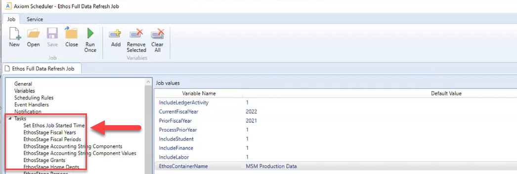 In the Explorer task pane, in the Libraries section, click Scheduler Jobs Library > Ethos Jobs.