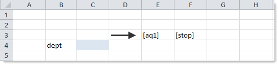 When the Axiom query is processed, data records are inserted after the cell marked with [aq#]. If the query is vertical, the records are inserted below the cell. If the query is horizontal, the records are inserted to the right of the cell.