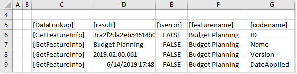 [GetFeatureInfo] rows use the following parameter columns. Within the DataLookup control row, these parameter names must be placed in square brackets—for example, [CodeName]. The parameters can be placed in any order.