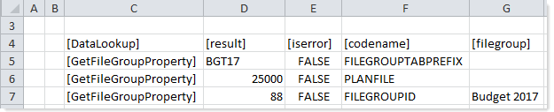 For more examples of GetFileGroupProperty use, see GetFileGroupProperty function. The same examples work for both approaches. To use a function example in a DataLookup data source, you would place the applicable function parameters in the corresponding parameter columns.